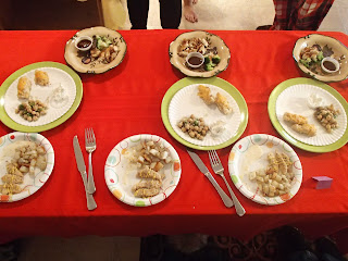 The competitors were my sisters, my brother, and my sister-in-law. The judges were my mom, my grandma, and my husband. We set up the pantry, created four stations, and brought out utensils/appliances for use. I informed the chefs of the rules and the competition began! I video recorded several portions of the competition and compiled them into one video.
